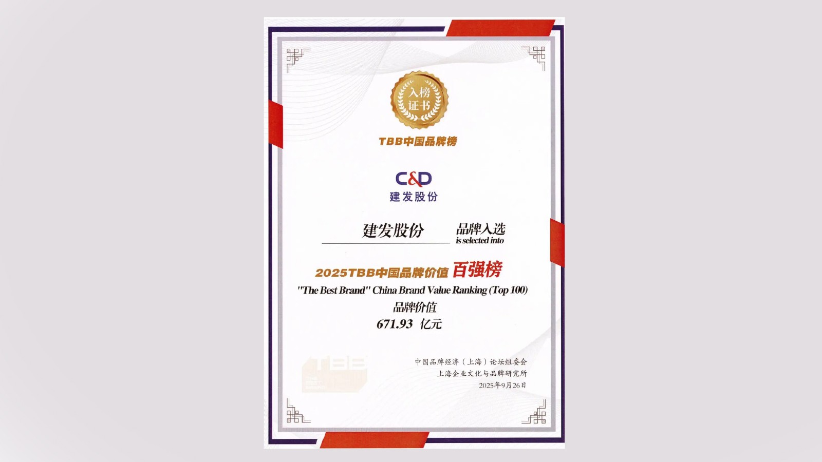 Recently, the 2025 TBB · China Brand Value Ranking (Top 100) was announced in Shanghai. C&D Inc. (600153.SH) once again secured its position on the list, ranking 66th with a brand value of RMB 67.193 billion. Moving forward, C&D Inc. will continue anchoring its brand positioning as a "Chinese Conglomerate, Global C&D," persisting in specialized operations and global development strategies. It will consolidate core competitive advantages through resource integration and service capabilities while advancing brand building with long-term commitment, deepening recognition of its professional and trustworthy corporate brand image.